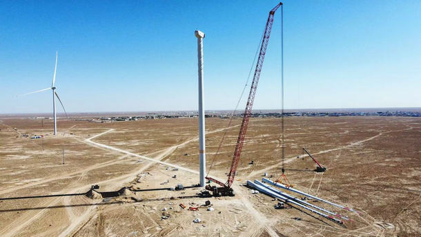▲寰泰能源在哈萨克斯坦投建的Sarkylmas Kuat 50MW风电项目完成风机吊装,这是公司首个实现自主吊装作业的风电项目。